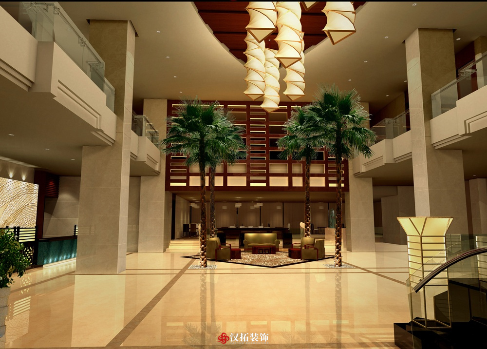 設(shè)計說明:預(yù)算:1100萬 利用原結(jié)構(gòu)營造水景,高低錯落,小橋流水,庭園小徑,仿古花格,用“蒙太奇”的手法來詮釋中國傳統(tǒng)文化及現(xiàn)代酒店裝飾理念