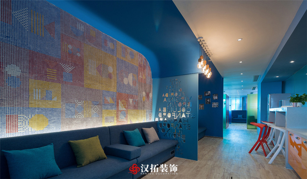 設(shè)計說明:整個空間以藍色為主色調(diào),將其他顏色嵌入其中,打造出一種小清新的自然感,讓人心情愉悅舒適。光線明亮,整體富有層次感,簡約溫馨。