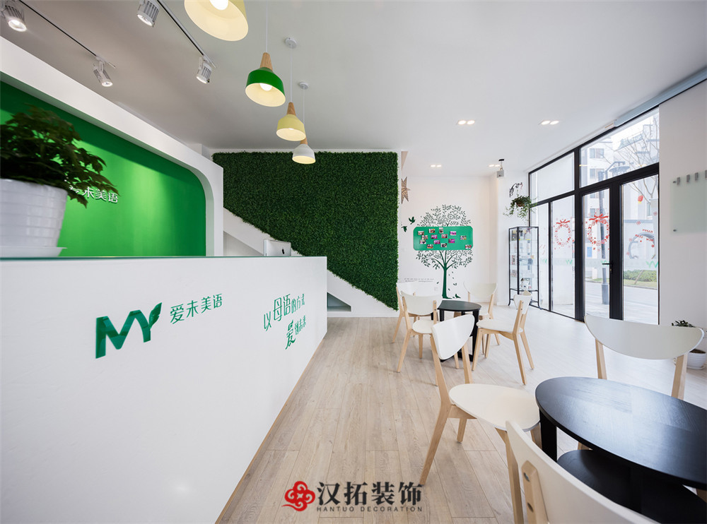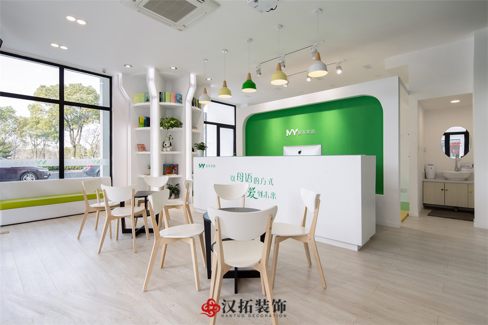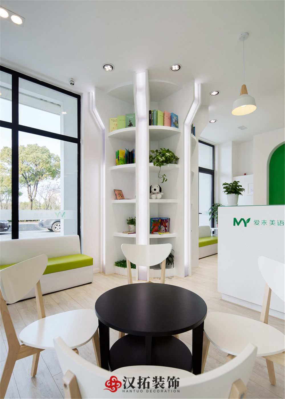 設(shè)計說明:整個空間以綠色為主色調(diào),清新亮麗,光線明亮。家具主要以淺色調(diào)為主嗎,交融著現(xiàn)代藝術(shù)的時尚氣息,溫馨而別致,讓空間多了些跳躍感。