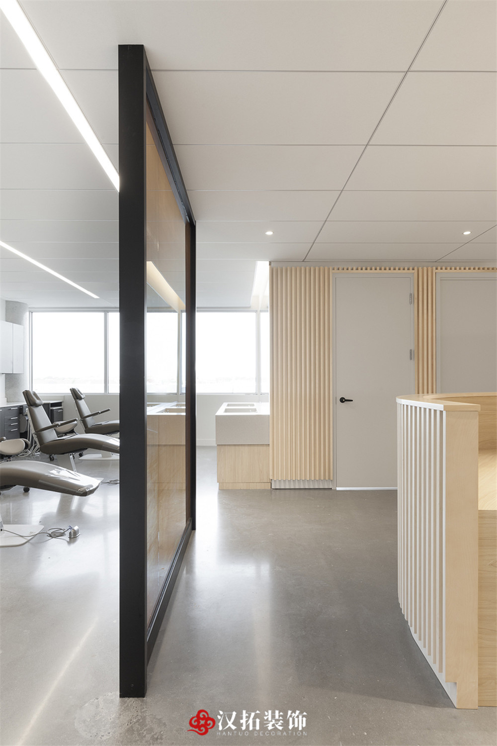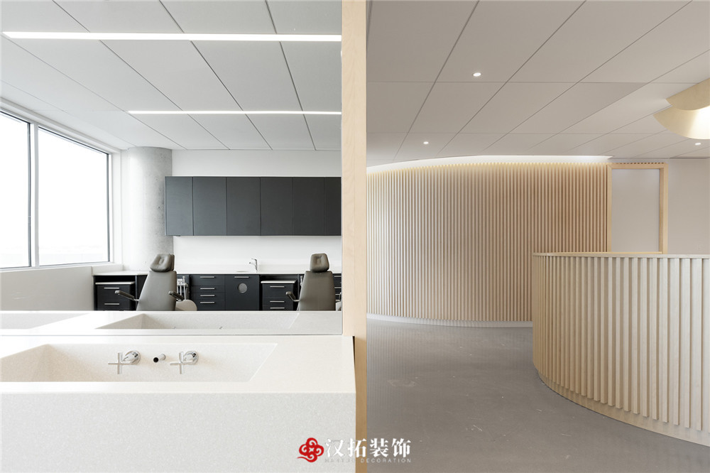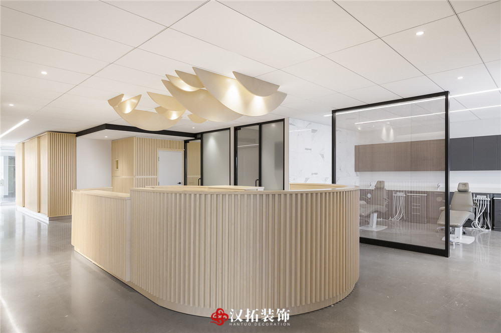 設(shè)計(jì)說明:專業(yè)口腔醫(yī)院,光影豐富,多層次,不規(guī)則的切面延伸出實(shí)心木管,平衡冷暖色調(diào)。在空間營造上達(dá)到“靜、雅、素、潔、適”的效果,使醫(yī)患之間有著良好的溝通氛圍,緩解各方內(nèi)心的焦慮、不安和躁動(dòng),營造平和、舒適、寧靜的就診環(huán)境。