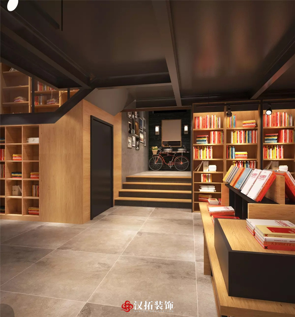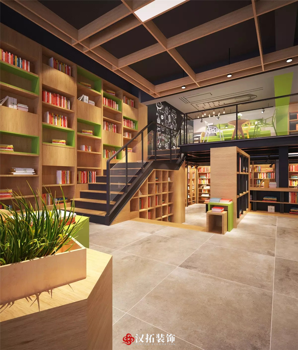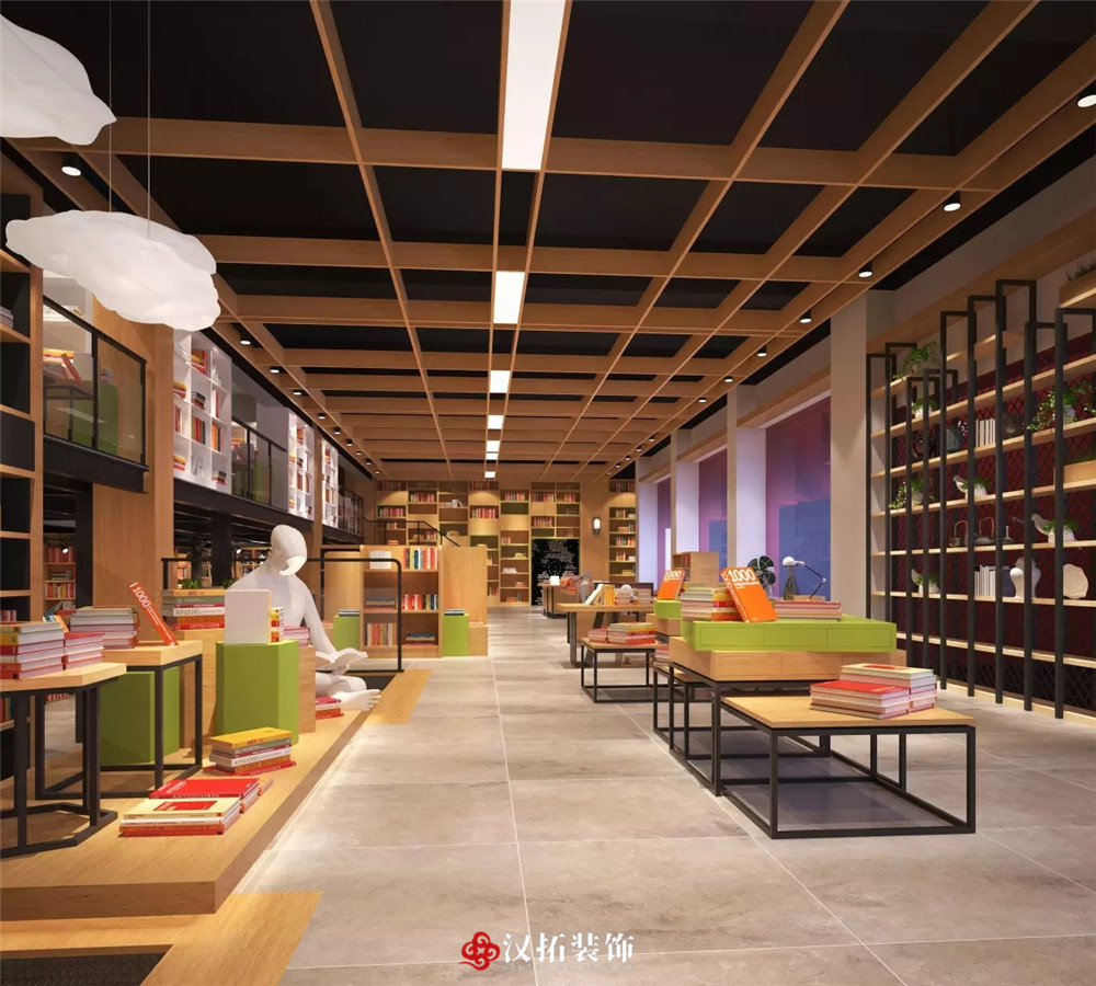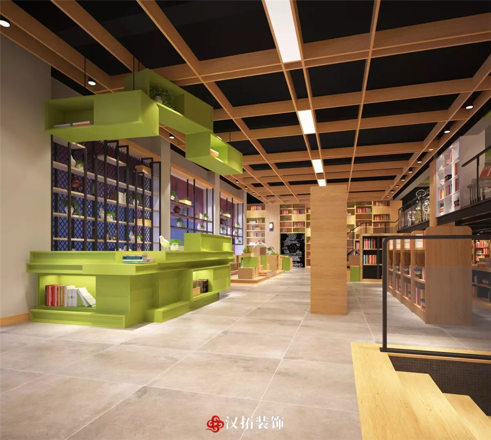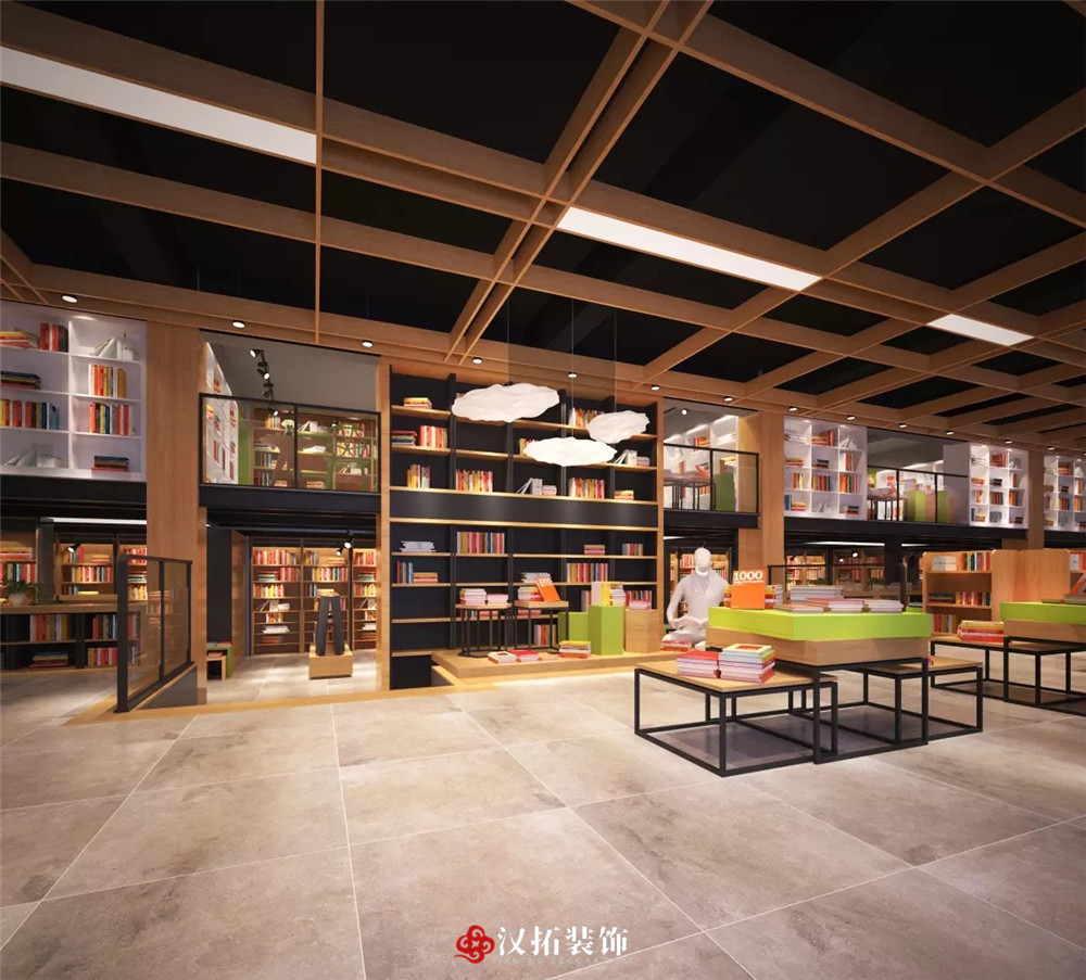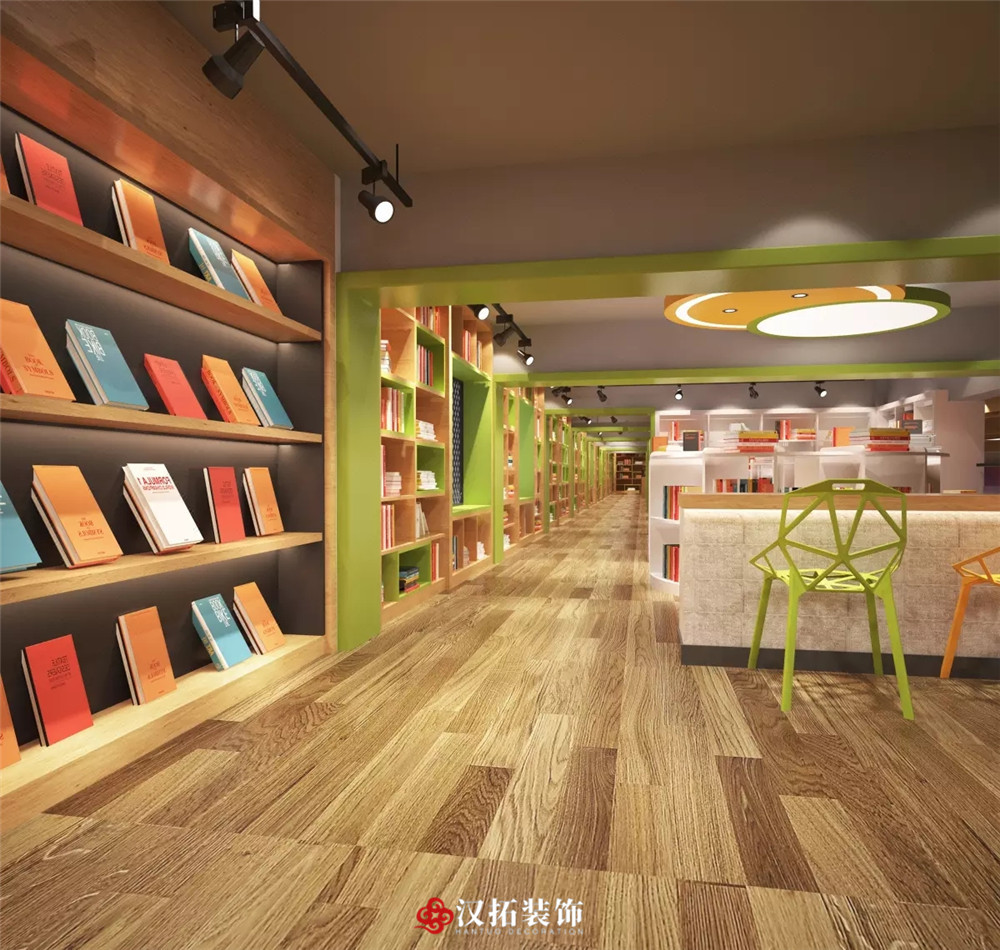 設(shè)計(jì)說(shuō)明:整體光線明亮,適宜閱讀,不同類型的圖書(shū)展覽架使用不同的材質(zhì)和顏色作為區(qū)分,注重讀者體驗(yàn),整個(gè)空間有格調(diào),有層次,充滿精神享受。