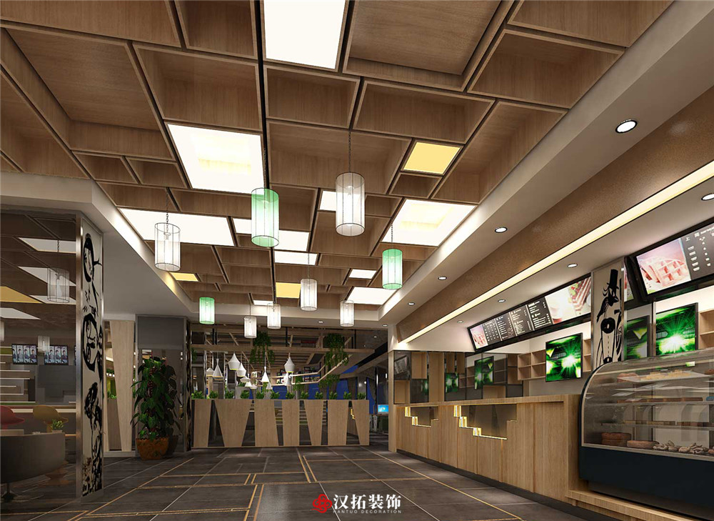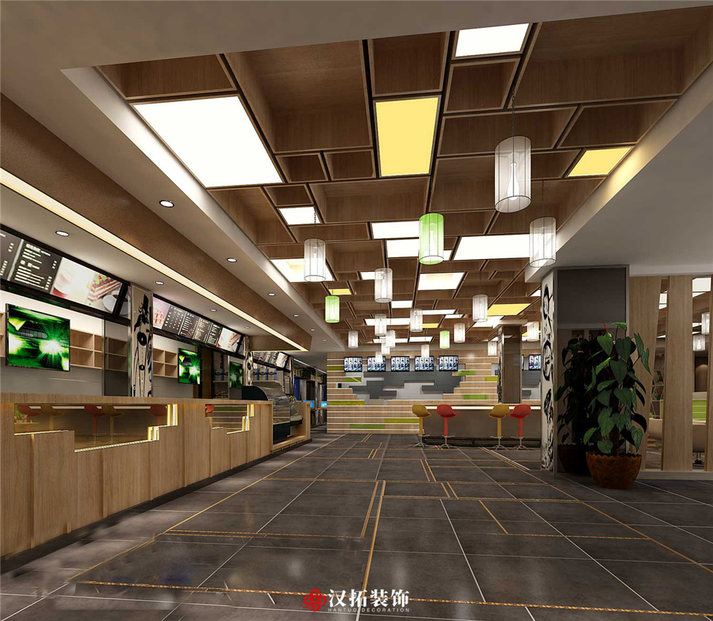 設(shè)計(jì)說(shuō)明:整個(gè)空間色彩清新,隔板點(diǎn)綴著綠植,凳子也以深綠為主,給人一種安靜優(yōu)雅的感覺(jué)。休閑吧臺(tái)以小清新搭配為主,讓人在娛樂(lè)中可以獲得休閑。