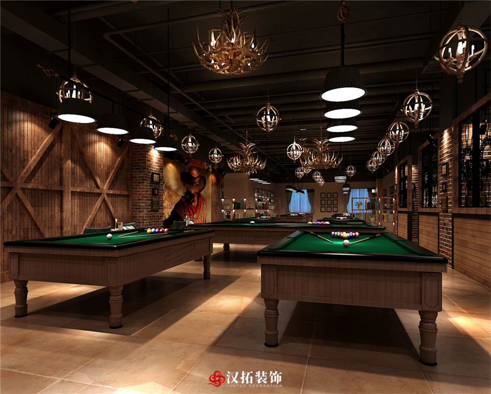 設(shè)計說明:整個空間分為臺球區(qū),網(wǎng)咖區(qū),休閑區(qū),展現(xiàn)出深邃的文化氣息。色彩上以褐色為主,運用的都是淡雅、柔和、協(xié)調(diào)的色調(diào),散發(fā)出古樸、懷舊的氣息。