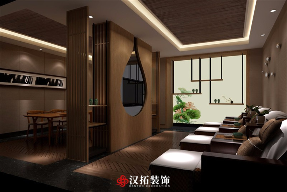 設(shè)計說明:色彩和燈光都達到極度統(tǒng)一,整體和諧優(yōu)雅,極富輕松、時尚、藝術(shù)自然的設(shè)計感,燈具和屏風(fēng)的點綴充滿藝術(shù)氣息,讓人達到身、心、靈的極度放松