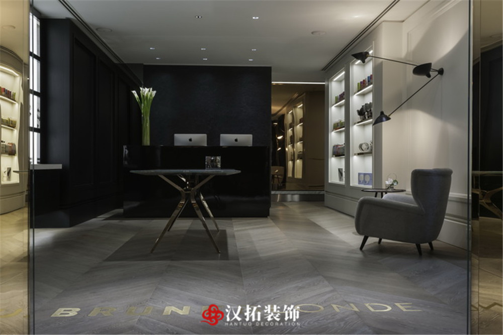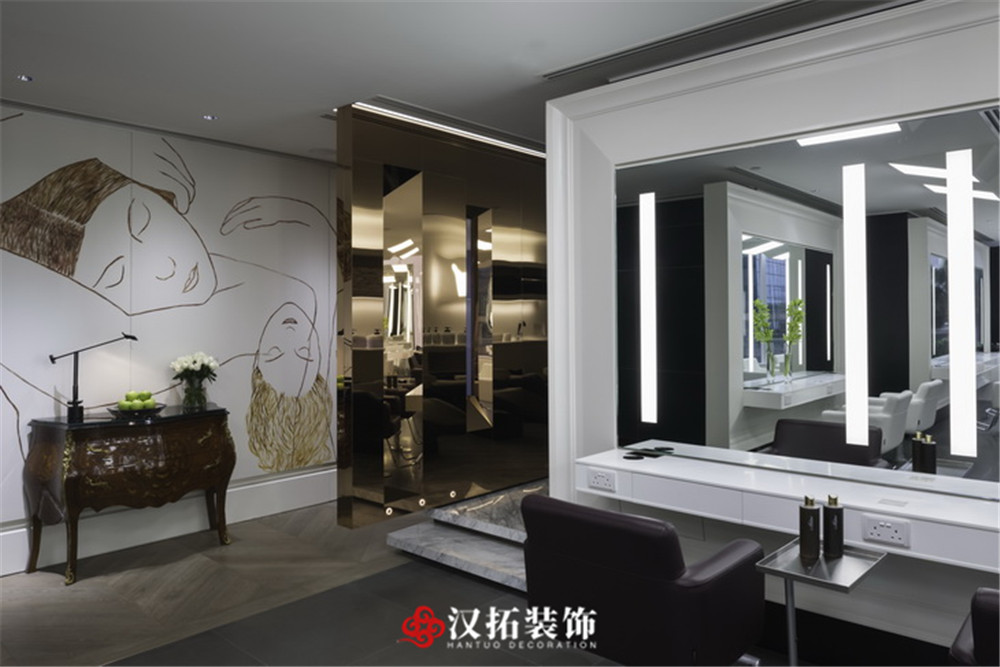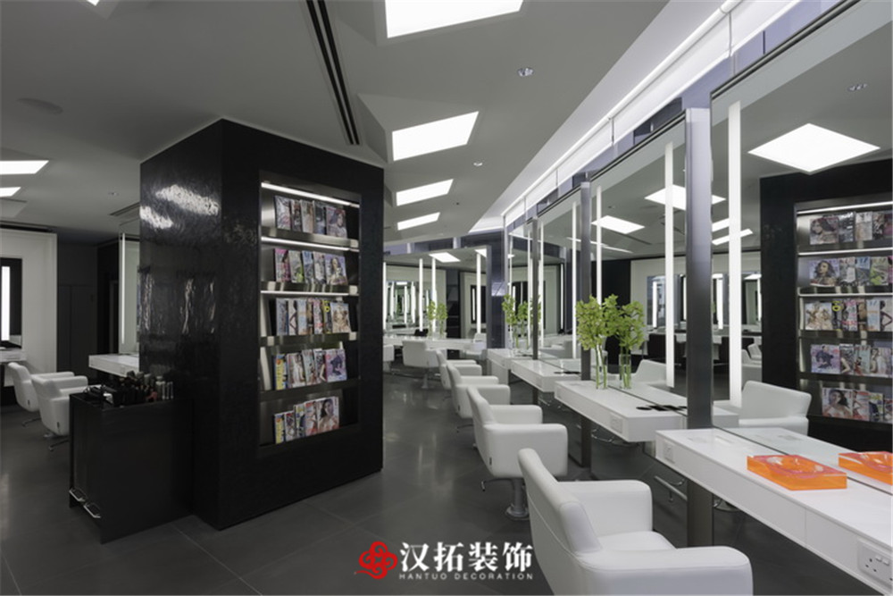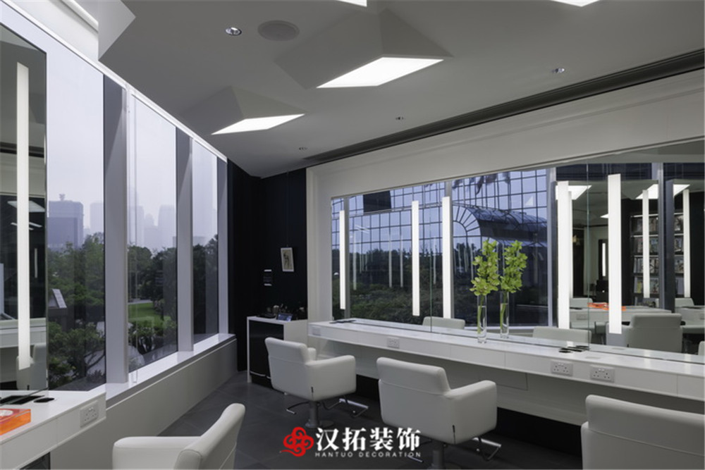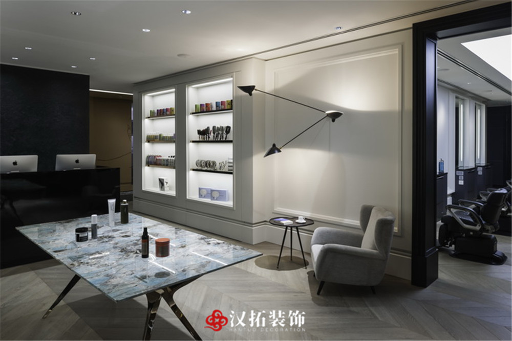 設(shè)計(jì)說明:理發(fā)區(qū)整齊劃一的座位排布,形成規(guī)整的序列,燈光被調(diào)節(jié)到最為適合工作的狀態(tài),明亮卻不刺激。在簡(jiǎn)單利落的空間格局中,各場(chǎng)域緊密地串聯(lián)合一,使整個(gè)分各個(gè)統(tǒng)一干練。