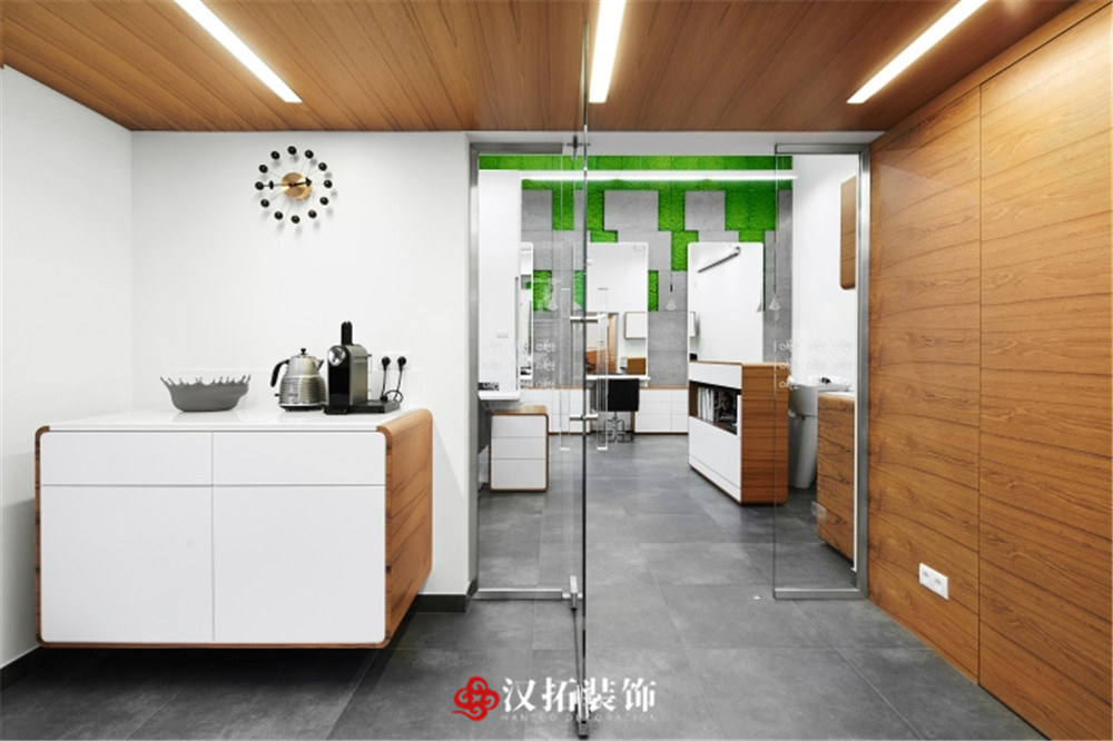 設(shè)計(jì)說(shuō)明:整體以灰色和木質(zhì)底色相融合,加以綠色相點(diǎn)綴,富有質(zhì)感的同時(shí)也給空間增添一份親和力,線(xiàn)條流暢讓人感覺(jué)舒服,光線(xiàn)寬敞明亮,增加空間的通透感。