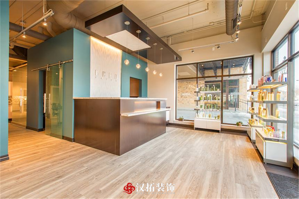 設(shè)計(jì)說明:整體為小清新色調(diào),墻面用天藍(lán)色點(diǎn)綴,讓人心情輕松愉悅,休閑區(qū)備有小零食,讓客戶在等待過程中不無聊,充分滿足客戶的需求,提高客戶的體驗(yàn)感。