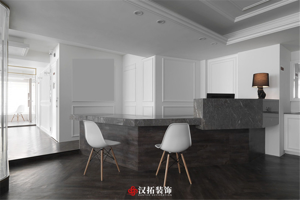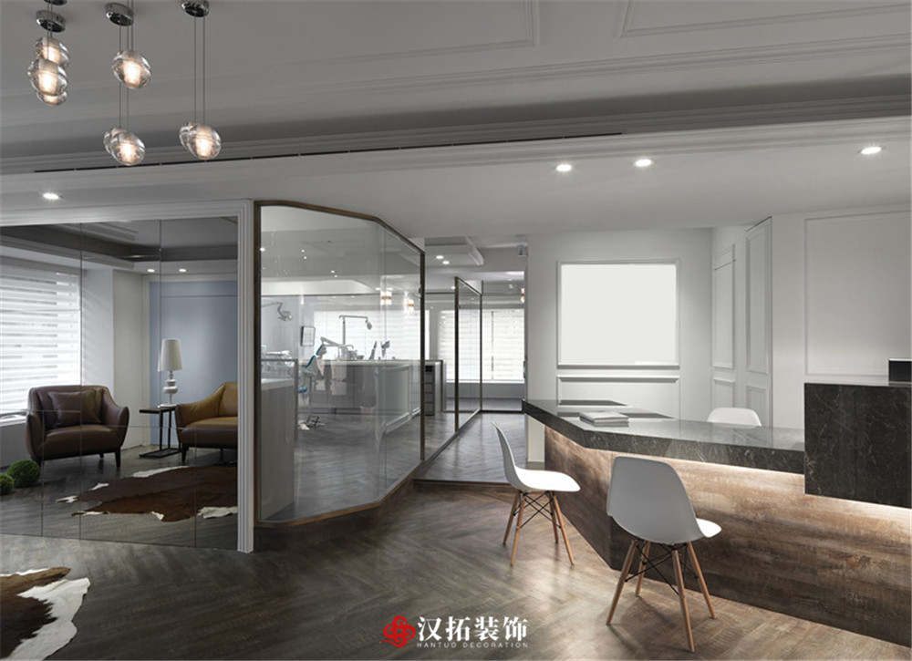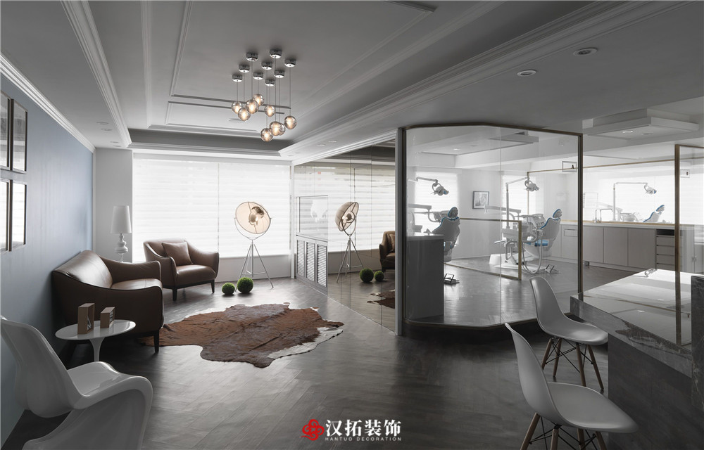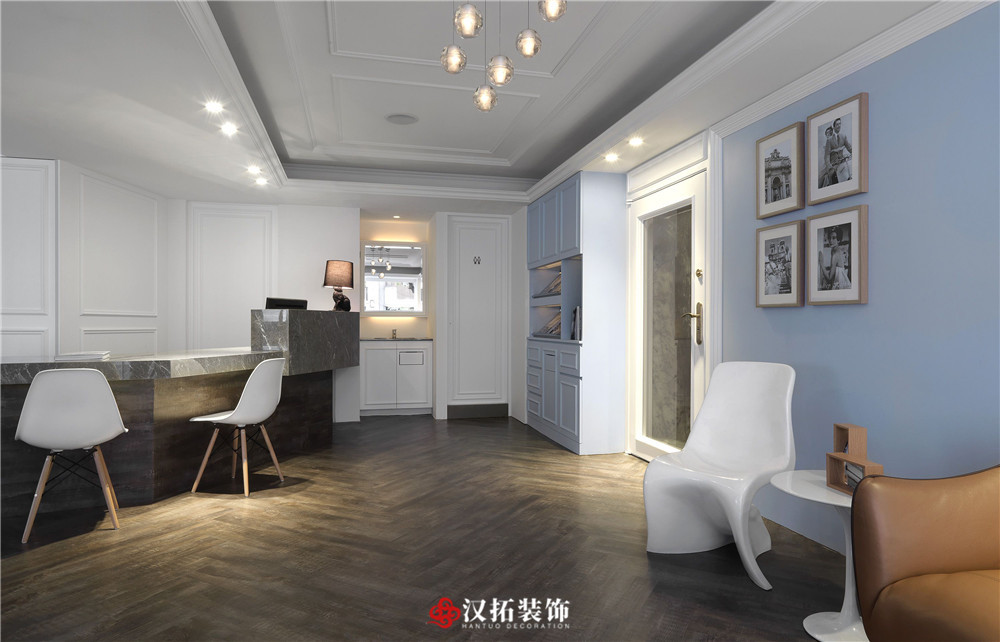 設(shè)計說明:顛覆牙科的傳統(tǒng)印象,讓優(yōu)雅的白色新古典診所,擁有與日光及木紋交融的溫度,帶給顧客更美好的診療經(jīng)驗,候診區(qū)加入淡雅的藍(lán)色調(diào),舒適又賞心悅目的空間氛圍,讓看診成為一種享受。