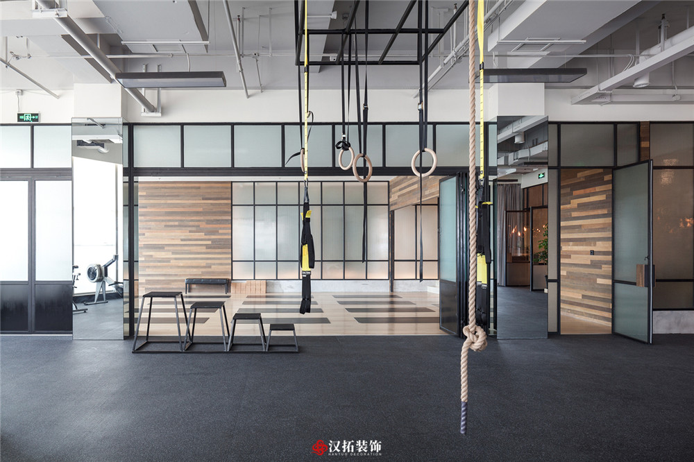 設(shè)計(jì)說明:都市生活忙碌,更多的人選擇健身放松來消除生活的疲憊,整個(gè)休息區(qū)采用暖色調(diào),溫馨優(yōu)雅,健身區(qū)域采用深色地板,將設(shè)計(jì)的元素、色彩、照明、原材料簡(jiǎn)化到最少的程度。