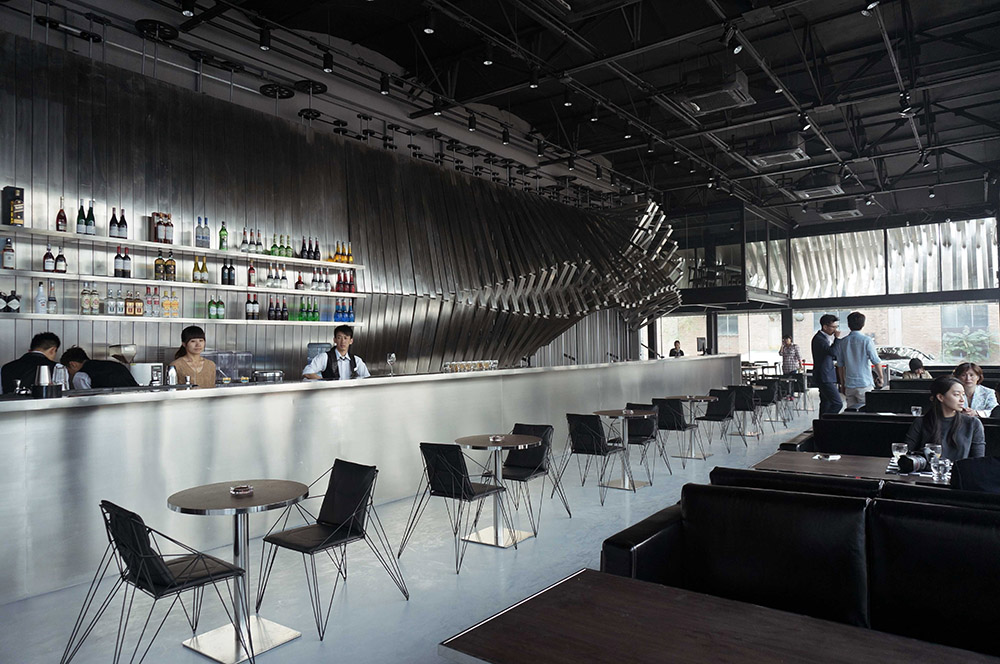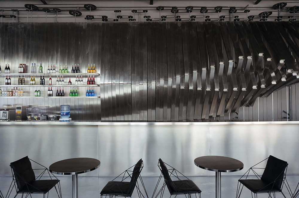 設(shè)計(jì)說明:該咖啡廳是由南京漢拓裝飾工程有限公司裝修的。該咖啡廳的定位就是酷炫,對(duì)于設(shè)計(jì)師的要求是結(jié)合工業(yè)現(xiàn)代元素,又要有智能化商業(yè)元素的糅合,設(shè)計(jì)師的基調(diào)是工業(yè)的金屬質(zhì)感,對(duì)于材質(zhì)的選材十分講究,塑造了十分硬朗的風(fēng)格,利用金屬材質(zhì)的反光特性,既制造了朦朧的映像,又可以反射光線在室內(nèi),斑駁的光感有別于其他咖啡館的模式。