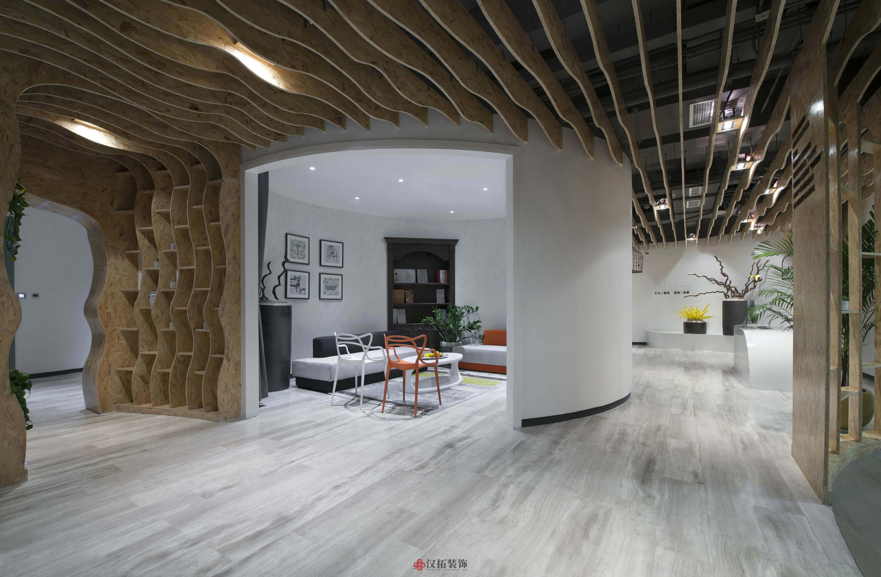 設(shè)計(jì)說明:本設(shè)計(jì)運(yùn)用新中式的設(shè)計(jì)風(fēng)格,多用弧形隔斷,整體設(shè)計(jì)成樹洞模樣,比較新穎。