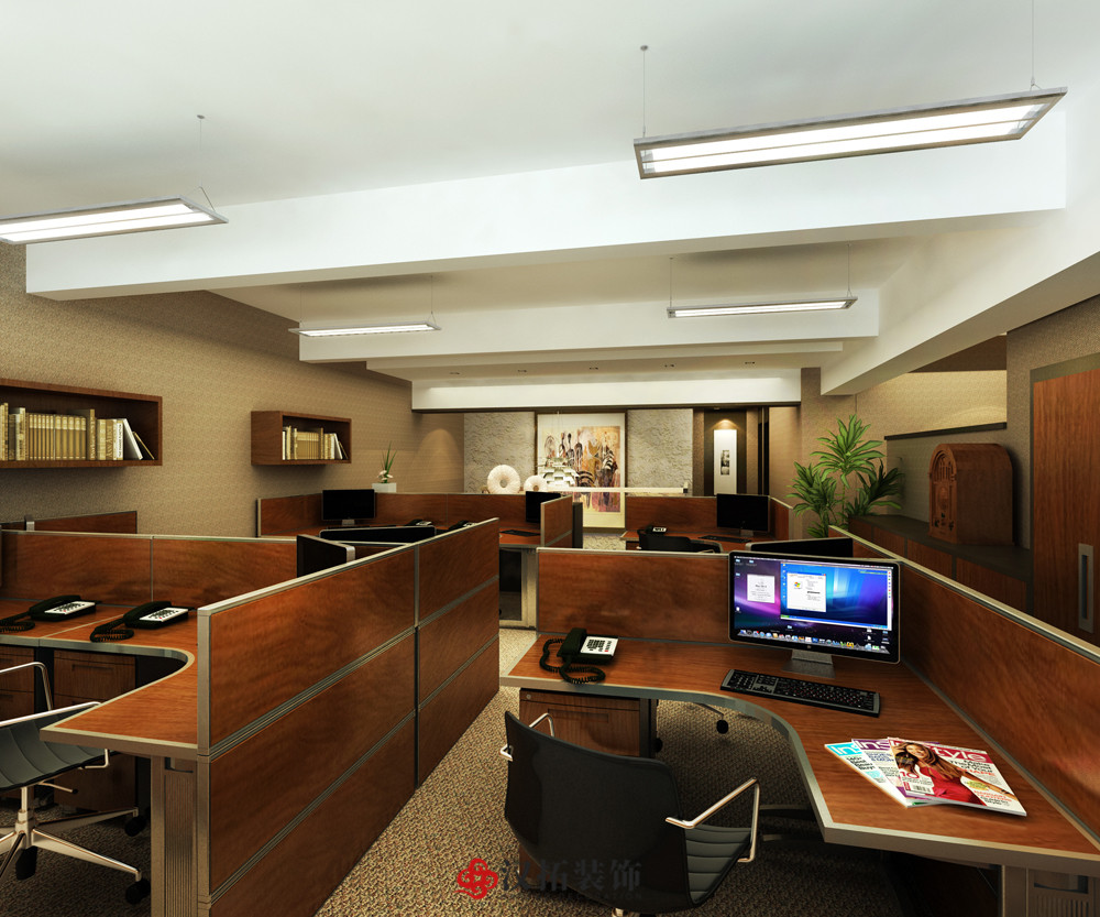 設(shè)計(jì)說明:預(yù)算:35萬(wàn) 以燈光的明亮度來凸顯空間的層次感,依據(jù)辦公室使用人數(shù)和私密程度的不同,做出分隔的功能性空間,展現(xiàn)出中式的層次之美