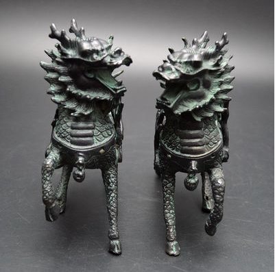 青銅對(duì)麒麟風(fēng)水招財(cái)收藏品